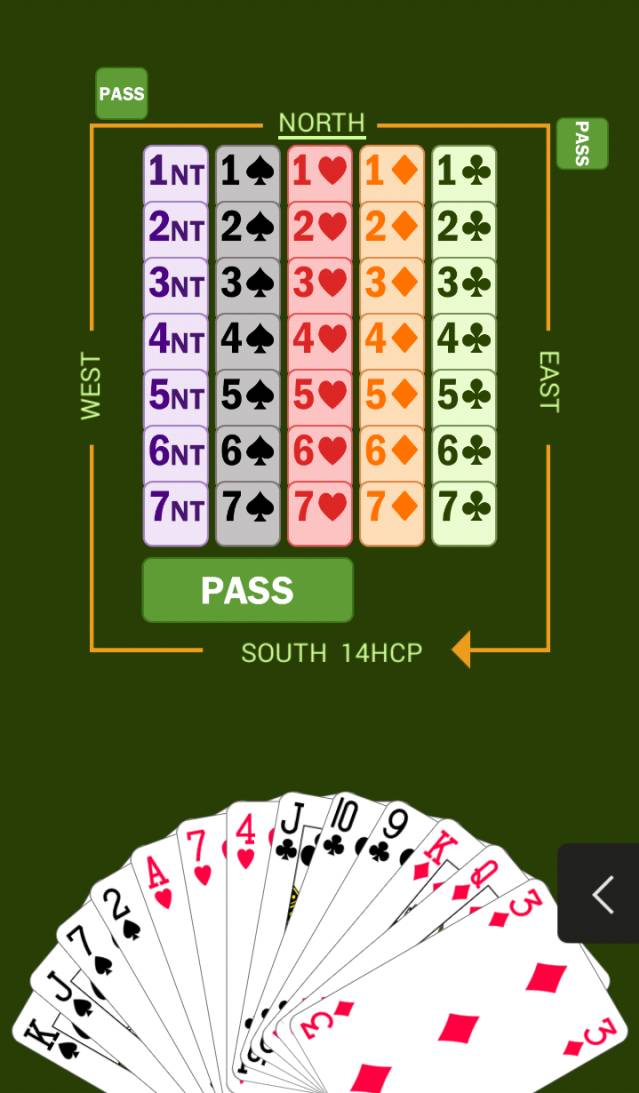 1、1C还是1D? 14点,4-3-3-3平均牌型,第三家开叫,草花J109,方块KQ3,都是三张,但方块牌力更强,似乎有理由选择1D,不过回忆一下CCBA叫牌约定卡,低花33果断选择1C!。